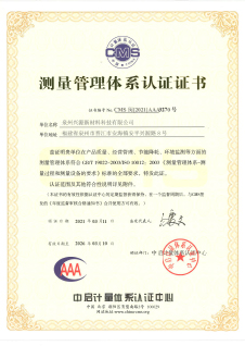 測量管理體系認(rèn)證證書
